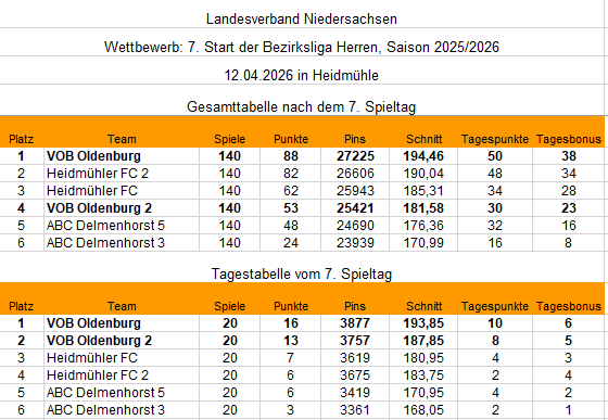 Bezirksliga 1. Mannschaft Tagesergebnis