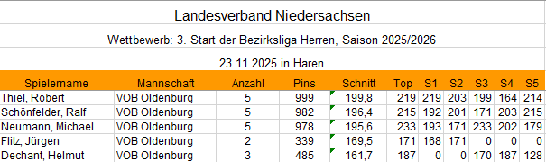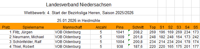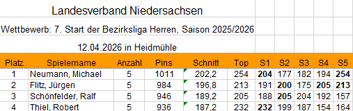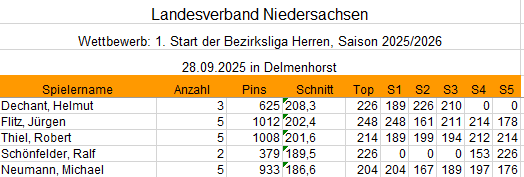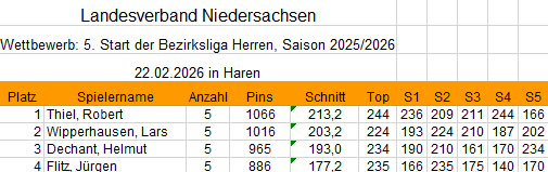 Bezirksliga 1. Mannschaft Tagesergebnis