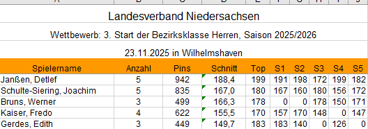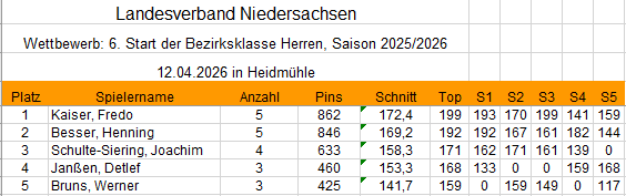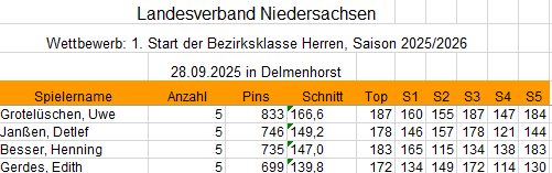 Bezirksliga 1. Mannschaft Tagesergebnis