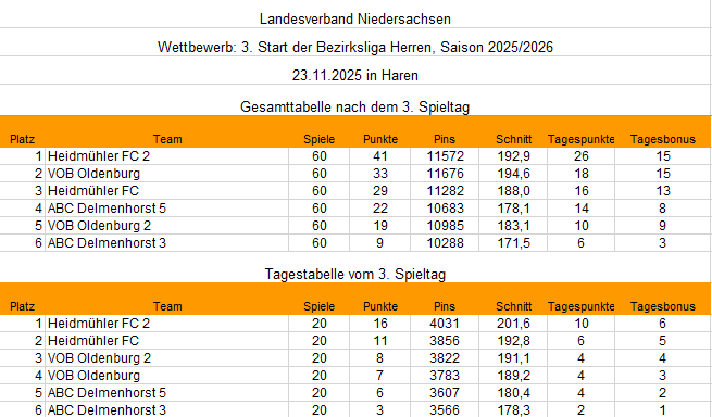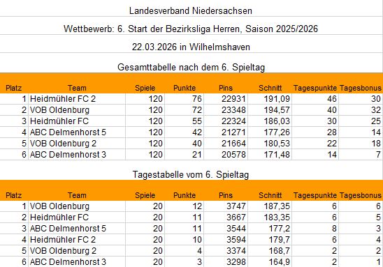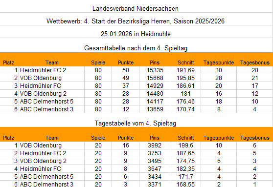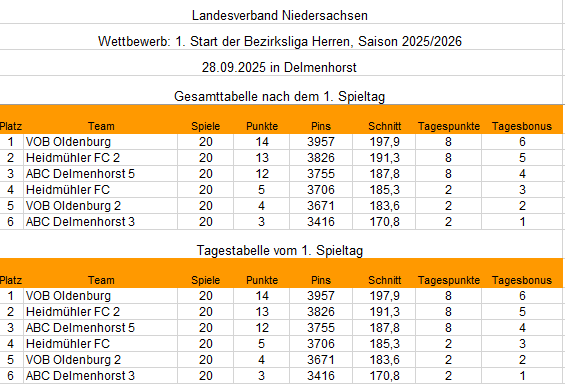 Bezirksliga 1. Mannschaft Tagesergebnis