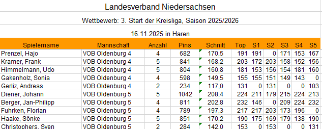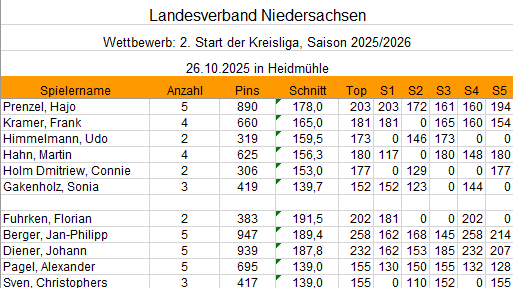 Bezirksliga 1. Mannschaft Tagesergebnis
