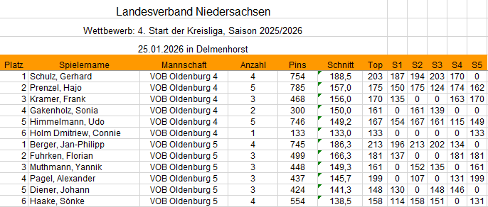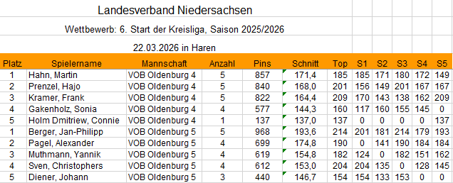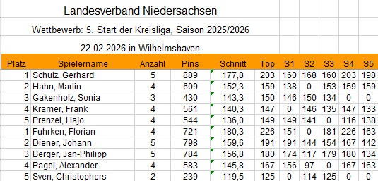 Kreisliga Tagesergebnisse